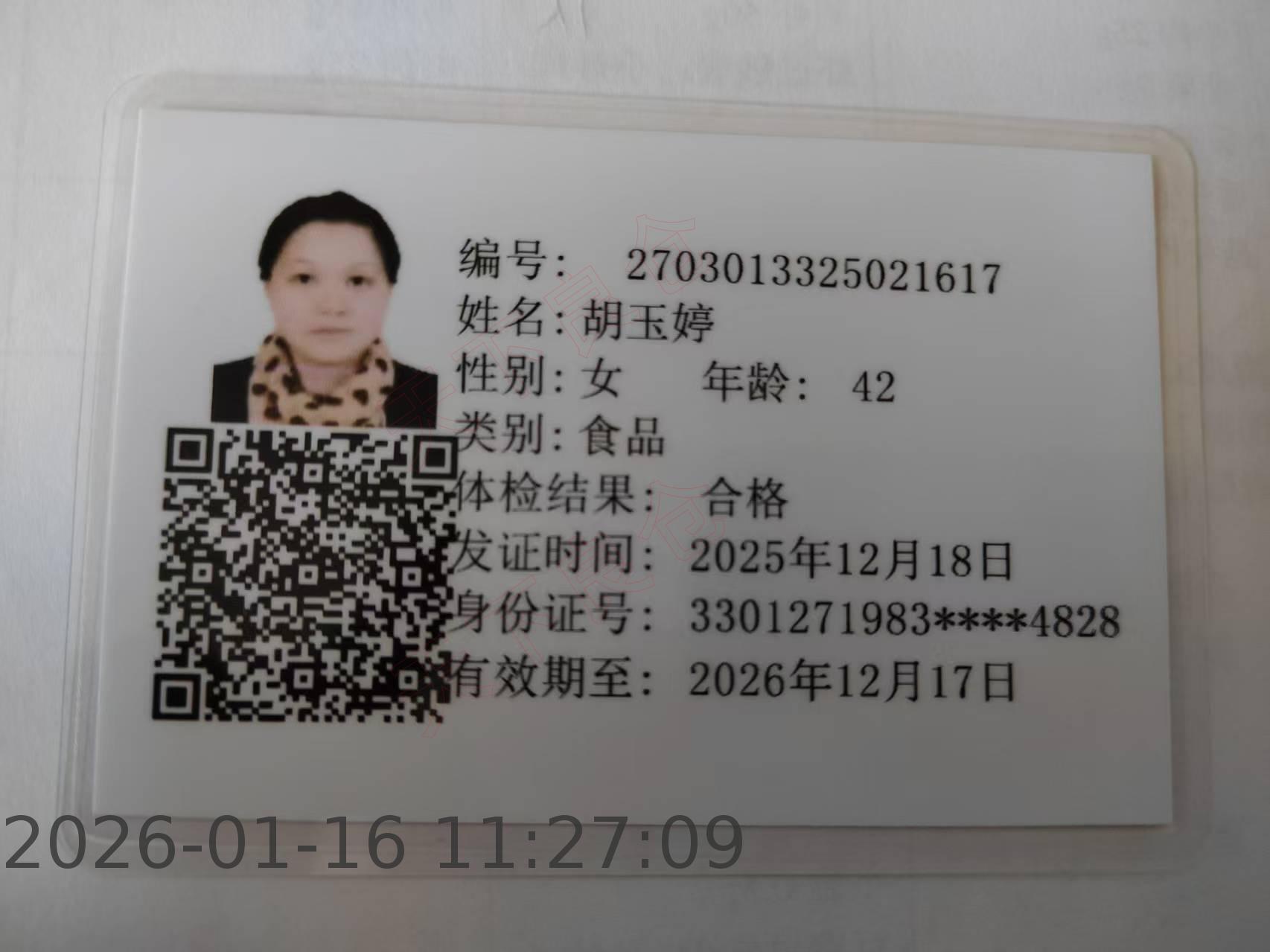 [健康证]南景幼学生--胡玉婷