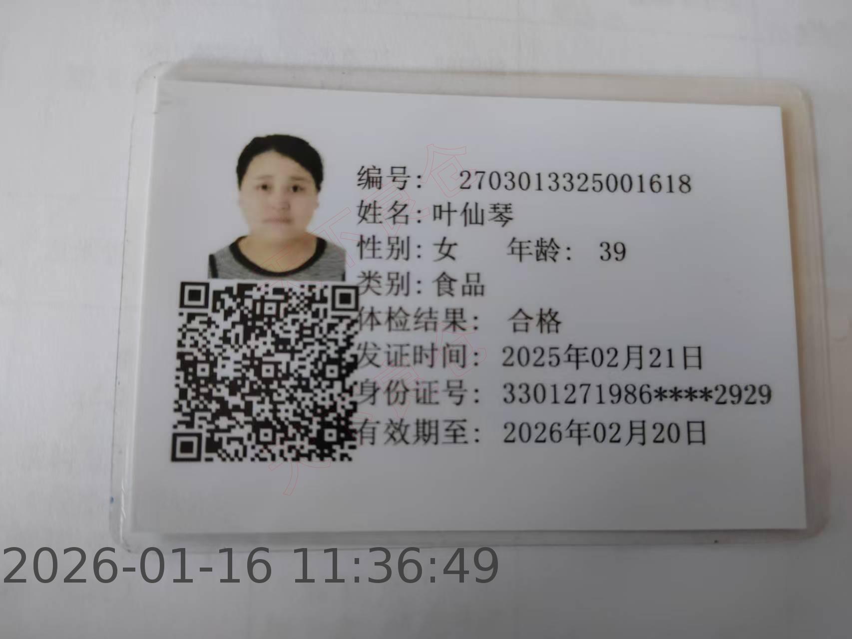 [健康证]南景幼学生--叶仙琴